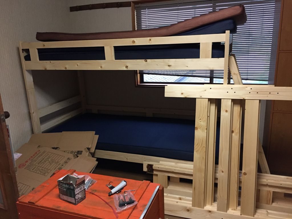 で、ここから二段ベッドを組みてて少しずつ部屋としての準備を。