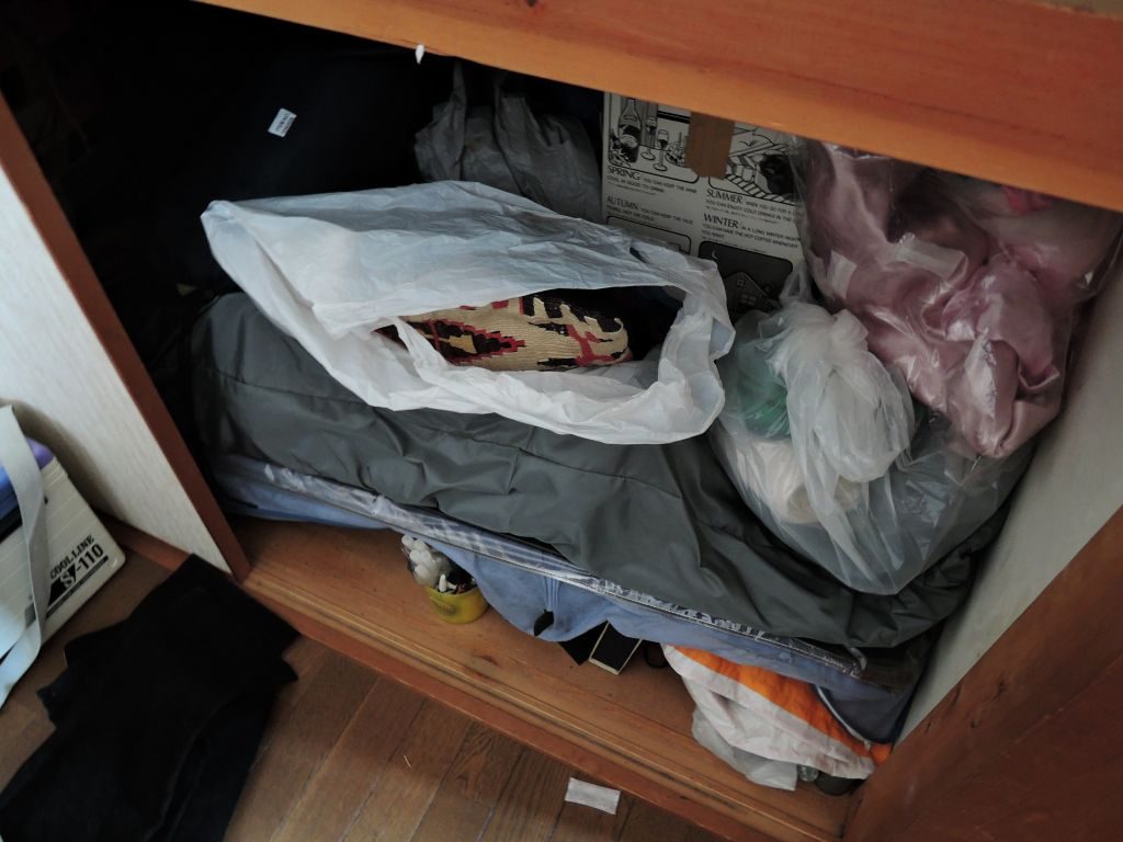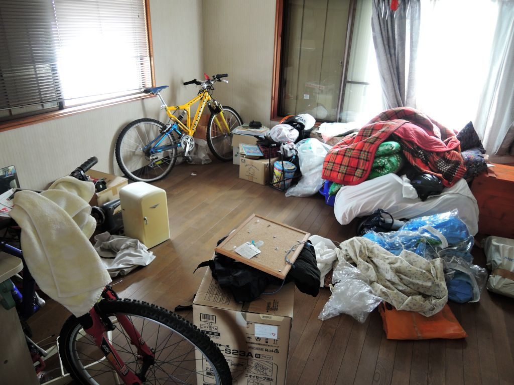 どしどし、荷物を撤去していきます。この作業だけで3日ほどかかりました。(自分のものだけならば、ほぼ捨てるんですが、いない人の荷物を、大事かどうか仕分けしていくのは大変。)